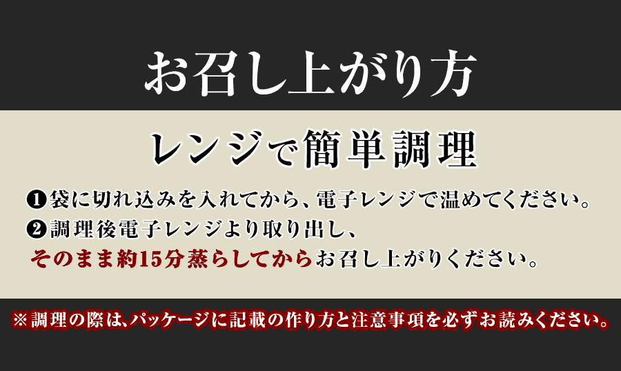 | 調理方法 | 電子レンジ ※詳しくは商品パッケージに記載の調理方法をご覧ください。 |