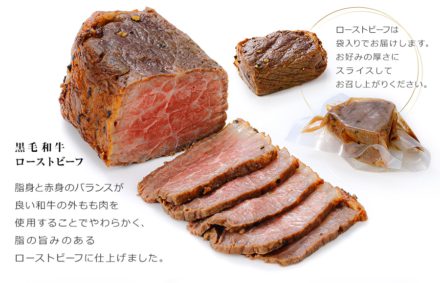 調理方法 | お重を開いて、テーブルに並べればそのままお召し上がりいただけます。 ※ローストビーフは袋入りでお届けします。お好みの厚さにスライスしてお召し上がりください。 |